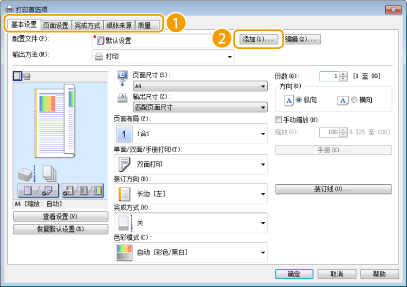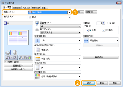 每次打印时指定“在A4尺寸纸张上单面横向”等设置组合可能会比较耗时。如果将常用的打印设置组合注册为“配置文件”,只需从列表中选择配置文件之一即可指定打印设置。本节说明了如何注册配置文件和如何使用配置文件进行打印。