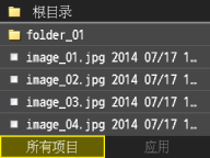 | 当轻触 <日期/时间(升序)> 或 <日期/时间(降序)> 时,文件将根据文件的修改日期和时间进行排序。 |