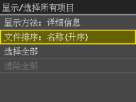 文件排序默认设置 1 | 轻触 <所有项目>。 |