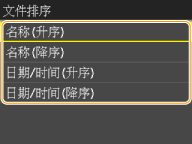 可以将 <名称(升序)> 或 <日期/时间(升序)> 等排序设置指定为文件排列顺序的默认设置。