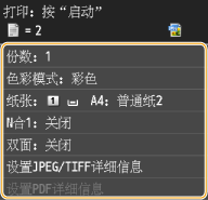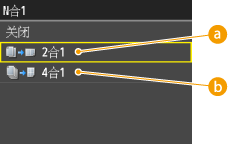 可以将两个或四个图像打印在一张纸上。轻触 <2合1> 或 <4合1>。