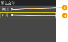 在特定设置的组合中,可以仅使用黑色 (K) 墨粉打印单色数据 (C=M=Y=0),即使选择了 <关闭>。下面提供了一些示例。