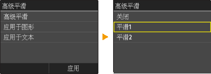 只有在打印机驱动程序中为高级平滑设置了 [打印机默认设置] 时,显示屏上 <应用于图形> 和 <应用于文本> 的设置才有效。