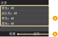 对 <黄色>、<品红色>、<青色> 和 <黑色> 打印浓度中的每一个进行精细调整。