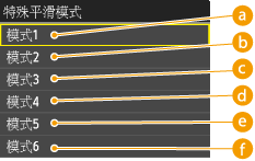 平滑打印多种对象的边缘。如果在设置为 <模式1> 进行打印时,浅色大字符和粗线的边缘不均匀,且未平滑打印,则设置 <模式4>。