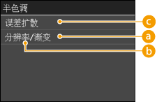 不仅平滑打印图表的边缘,还平滑打印图表中的半色调。如果在设置为 <模式1> 进行打印时,深色粗线大字符和半色调失调且未平滑打印,则设置 <模式2>。