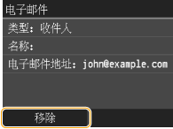 3 | 轻触 <移除>  <是>。 如果在步骤 2 中指定群组拨号中的接收方,则画面上显示“XX 接收方”。轻触此项目即显示组中注册的接收方。 |