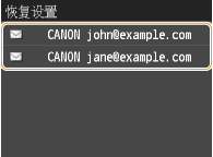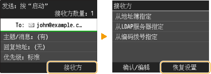 您可以从最近的三个接收方中选择一个接收方。当指定先前使用过的接收方时,本机也可以设置与上次发送文档到该接收方时所使用的相同扫描设置,例如浓度等。