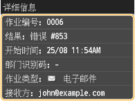 当 <显示作业日志> 设置为 <关闭> 时,无法查看已发送文档的日志。