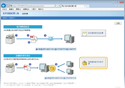 也可以通过将文件夹注册到地址簿,使用远程用户界面指定共享文件夹的位置。发送功能设置工具有助于用户轻松完成设置。 |