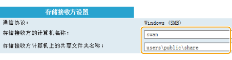 输入共享文件夹的名称(或路径)。例如:如果共享文件夹是名为“share”的子文件夹,并且包含在 C 驱动器中的 [Public] 文件夹中(路径:C:\users\public\share),请输入“users\public\share”。
