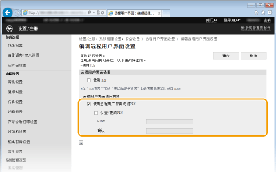 选择 [使用远程用户界面访问PIN] 复选框,并设置 PIN。