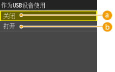 <关闭>禁止将数据保存到 USB 存储设备中。扫描数据无法保存到 USB 存储设备中。