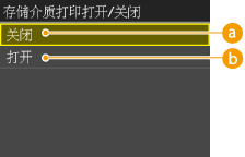 <关闭>禁用从 USB 存储设备读取数据的功能。无法打印 USB 存储设备中的数据。