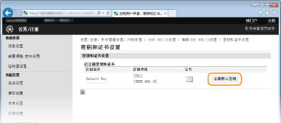 2 | 单击想要用于客户端认证的密钥对右侧的 [注册默认密钥]。  查看密钥对或证书的详细内容您可以检查证书的详细内容,或单击 [密钥名称] 下相应的文本链接或证书图标核实证书。 验证密钥对和证书 |