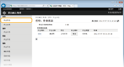 无论部门识别码管理设置如何,都将列出所有当前正在打印和等待打印的文档。 如果以终端用户模式登录时输入了您的用户名,则打印的文档上将只显示您的用户名。 在暂停文档和安全文档上单击 [作业编号] 显示详细信息。可以检查用户名和打印文档的页数。 |