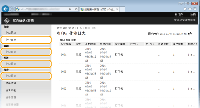 最多可显示 128 个打印、复印、发送传真/电子邮件(TX)或接收传真(RX)的作业历史记录。