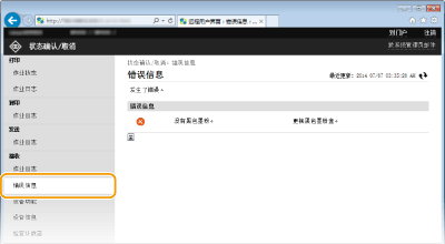 当发生错误时,单击门户页(主页)上 [错误信息] 下面显示的讯息将显示此页面。