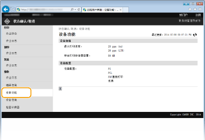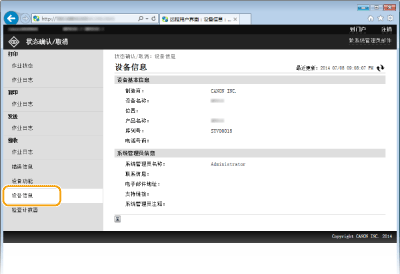 显示本机和系统管理员的相关信息。此信息在 [设置/注册] 页面上的 [系统管理] 中设置。