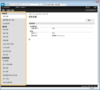 可通过使用远程用户界面更改各种机器设置。大多数设置也可在本机上设置,但是某些设置只可使用远程用户界面设置。