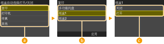 ),将不显示 <多功能托盘>。打印从多功能托盘送入的纸张时,始终启用自动纸盒选择功能。