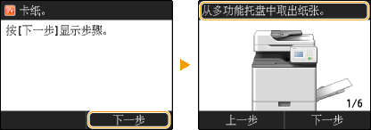 2 | 从纸盒轻轻抽出纸张。 可能在显示屏所显示纸盒以外的地方卡纸。拉出每个纸盒,然后检查是否有任何卡纸。 |