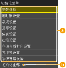 若要初始化<网络设置>和<系统管理设置>的设置,请参阅