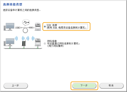 选择 [USB 连接],然后单击 [下一步]。
