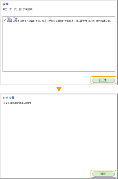 视使用的操作系统而定,可能会出现安全性警告讯息。如果出现此讯息,请允许您的网络浏览器显示内容。 1 | 将User Software and Manuals DVD-ROM插入计算机光驱。 | 2 | 单击 [手册]。 | 3 | 单击 [电子手册]。 |
