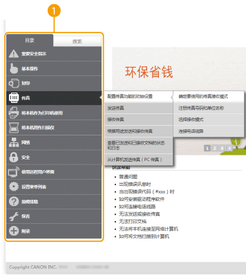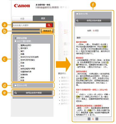 [目录] 标签/[搜索] 标签单击此标签可在目录和搜索之间切换显示。