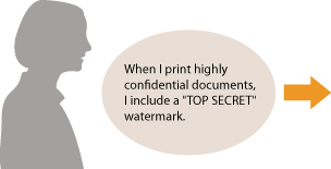 Set "TOP SECRET" as a watermark and register it in "profiles." You can then select this watermark from profiles whenever you need it. Registering Combinations of Frequently Used Print Settings |