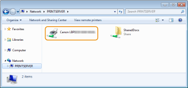 You can use the print server to install printer drivers for a shared printer on other computers (clients) on the same network. Because the printer drivers are installed via the print server, users of the other computers do not need to use the printer's CD-ROM/DVD-ROM.