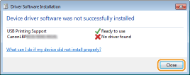 ![]() If a Plug and Play automatic setup screen like the one shown below is displayed when you connect the USB cable, click [Close] or [Cancel] to close it.
