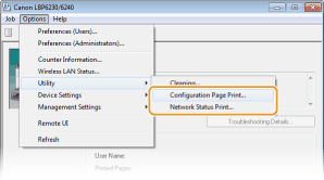 [Configuration Page Print]Prints a list of the settings under [Options]