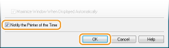 Select the [Notify the Printer of the Time] check box and click [OK].
