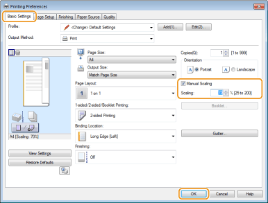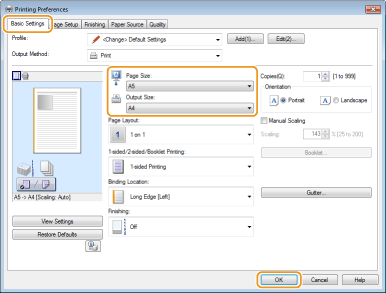 You can make enlarged or reduced printouts by using a preset print ratio, such as A5 to A4, or a custom print ratio that you set in increments of 1%.