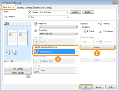 Select [Booklet Printing] in [1-sided/2-sided/Booklet Printing]