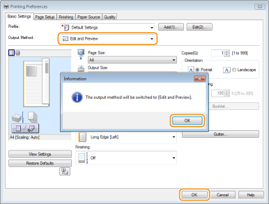 Select [Edit and Preview] in [Output Method].