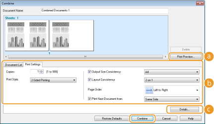 Change the settings as necessary, and click [Combine].