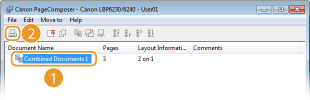 By using Canon PageComposer, you can combine multiple documents into one print job and print the job with specified print settings. For example, this function enables you to combine documents made with different applications and print all of the pages in the same paper size.