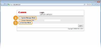 You can perform all Remote UI operations and make all settings. If a PIN (system manager password) has been set, enter it in [System Manager PIN]. (Setting System Manager Passwords) If a PIN has not been set (factory default setting), you do not need to input anything.