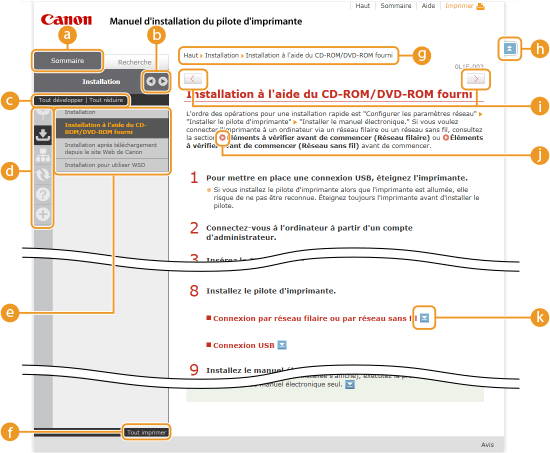 Cliquez ici pour afficher les informations indiquant comment feuilleter le guide d'installation, effectuer une recherche et obtenir d'autres renseignements.