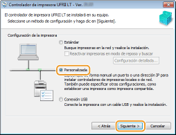 Seleccione [Personalizada] y haga clic en [Siguiente].