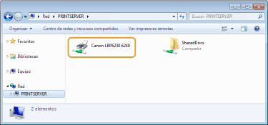 Seleccione un servidor de impresión en [Red] o [Mis sitios de red].