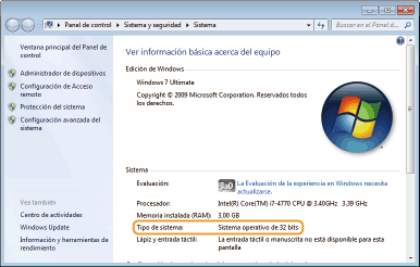Si no está seguro de si su ordenador utiliza Windows de 32 o de 64 bits, siga el procedimiento que se indica a continuación.