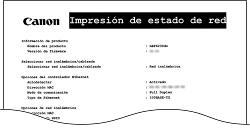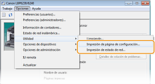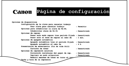 [Impresión de página de configuración] o [Impresión de estado de red].