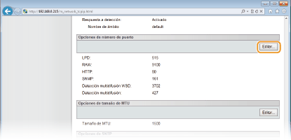 Haga clic en [Editar] en [Opciones de número de puerto].