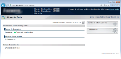 Puede ejecutar todas las operaciones del IU remoto y realizar todos los ajustes. Si se ha establecido un PIN (contraseña del administrador del sistema), introdúzcalo en [PIN del administrador del sistema]. (