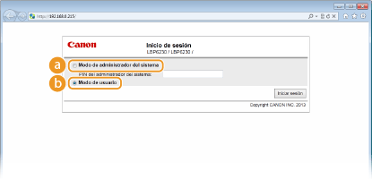 Seleccione [Modo de administrador del sistema] o [Modo de usuario].
