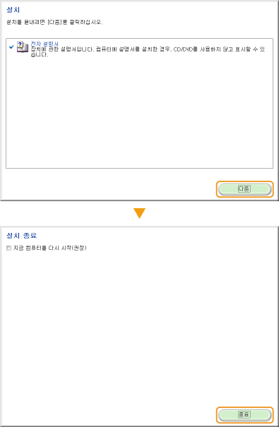 기기와 함께 제공된 CD-ROM/DVD-ROM을 사용하여 컴퓨터에 전자설명서를 설치합니다.